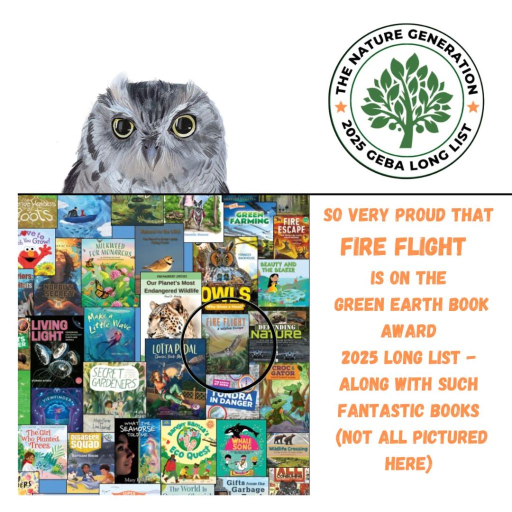 Boston, MA. Fire Flight: A Wildfire Escape has been long-listed for the 2025 Green Earth Book Awards. The Green Earth Book Awards “raise awareness about how the next generation can be environmental stewards and encourage young people to reflect on the beauty, resiliency, and fragility of our natural world.”
